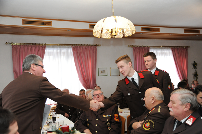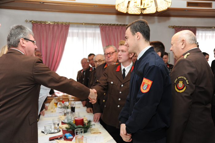 Kommandant Etlinger betonte in seiner Ansprache die Bedeutung der Jugendfeuerwehr, die neben der Ausbildung viel Spaß und Gemeinschaft bietet. Er erinnerte daran, dass die Preinsbacher Jugendlichen an vielen Bewerben erfolgreich teilnahmen und zahlreiche Stunden übten. Etlinger zeigte sich auch erfreut, dass die Bevölkerung die FF Preinsbach so stark unterstütze: von Spenden über Arbeitshilfen bis hin zum Besuch der Feste, die im Jahr 2016 wieder ein voller Erfolg waren. Die FF Preinsbach spiele für den Bezirk Amstetten auch in der Ausbildung eine wichtige Rolle, da viele Florianijünger im Feuerwehrhaus Preinsbach ausgebildet werden. Außerdem haben die Preinsbacher zahlreiche Pokale bei den Wasserleistungsbewerben nach Hause gebracht, so Etlinger stolz. So konnte das Duo Christian Schweighofer und Gottfried Raab 2016 die Landeswasserleistungsbewerbe gewinnen. Mittlerweile habe man am neuen Fahrzeug HLF 3 viele Stunden geübt und es war auch schon mehrmals im Einsatz. Etlinger erinnerte an die verschiedenen Einsätze: von der Rettung eines Schwans in Eisenreichdornach über einen besonders gefährlich Wohnungsbrand in Amstetten bis hin zu Hochwasserbedrohungen.