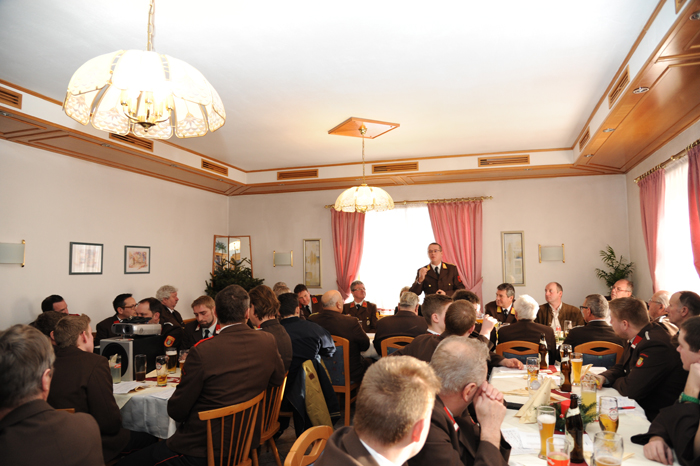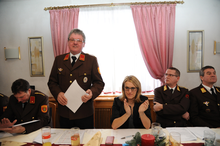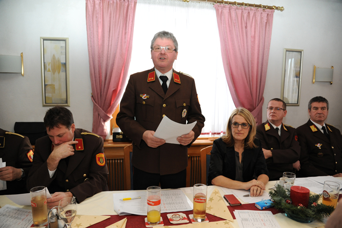 Die Kameraden der FF Preinsbach konnten Königsberger-Ludwig und Gemeinderat Hans Ebner eine eindrucksvolle Bilanz präsentieren: Rund 24.000 Stunden arbeiteten die Feuerwehrleute ehrenamtlich für die Gesellschaft. Im Jahr 2016 rückten die Preinsbacher zu vier Brandeinsätzen und 28 Technischen Einsätzen aus und hielten 51 Brandsicherheitswachen. Von der Feuerwehrhierarchie nahmen Abschnittskommandandant Johann Furtlehner und dessen Stellvertreter Stefan Schaub teil. Kommandant Furtlehner wies darauf hin, dass die FF Preinsbach auf allen Ebenen qualifizierte Mitglieder habe. Sie würden viele Stunden auf sich nehmen, um zu üben oder zu Einsätzen auszufahren. Werte und Traditionen würden bei der FF Preinsbach gelebt und an die Jugend weitergegeben, so Furtlehner.