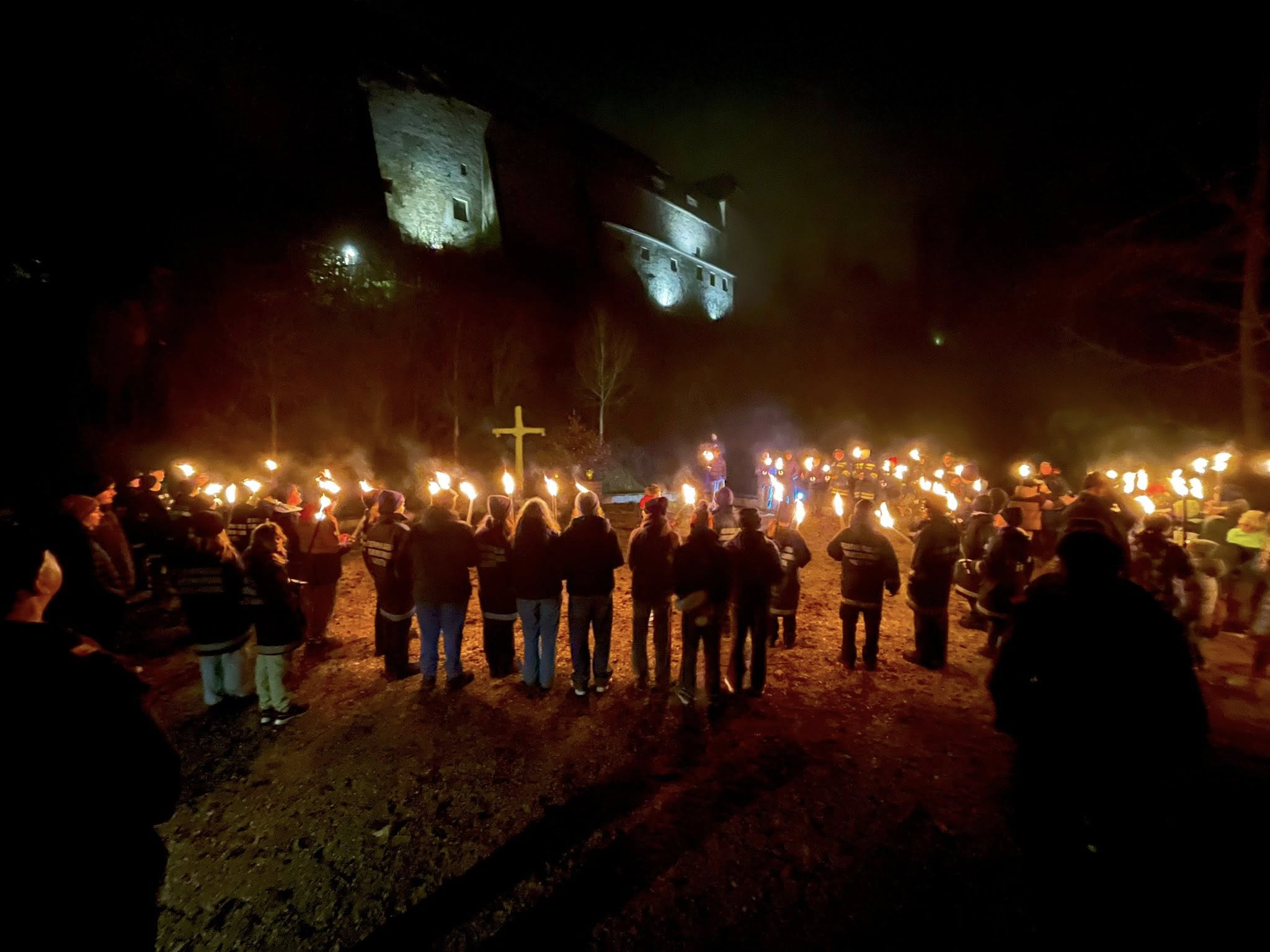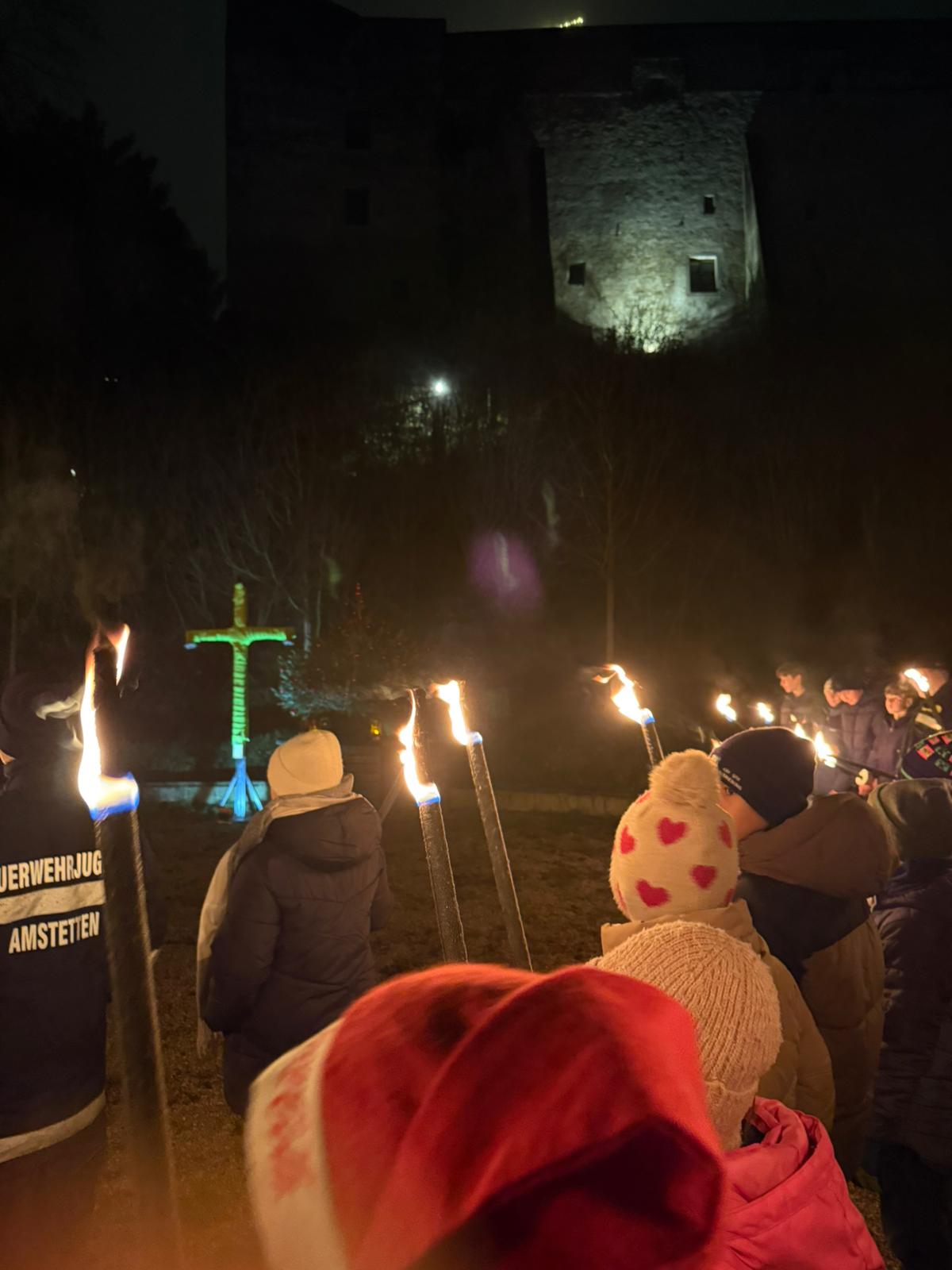 Nach einer stimmungsvollen Fackelwanderung gab Pfarrer Wieslaw Kudlacik vor dem tollen Ambiente von Schloss Ulmerfeld einen Impuls und er segnete die Burschen und Mädchen. Organisiert wurde die Feier von der FF Ulmerfeld-Hausmening, maßgeblich von Jugendsachbearbeiter Mairhofer und seinem Team.